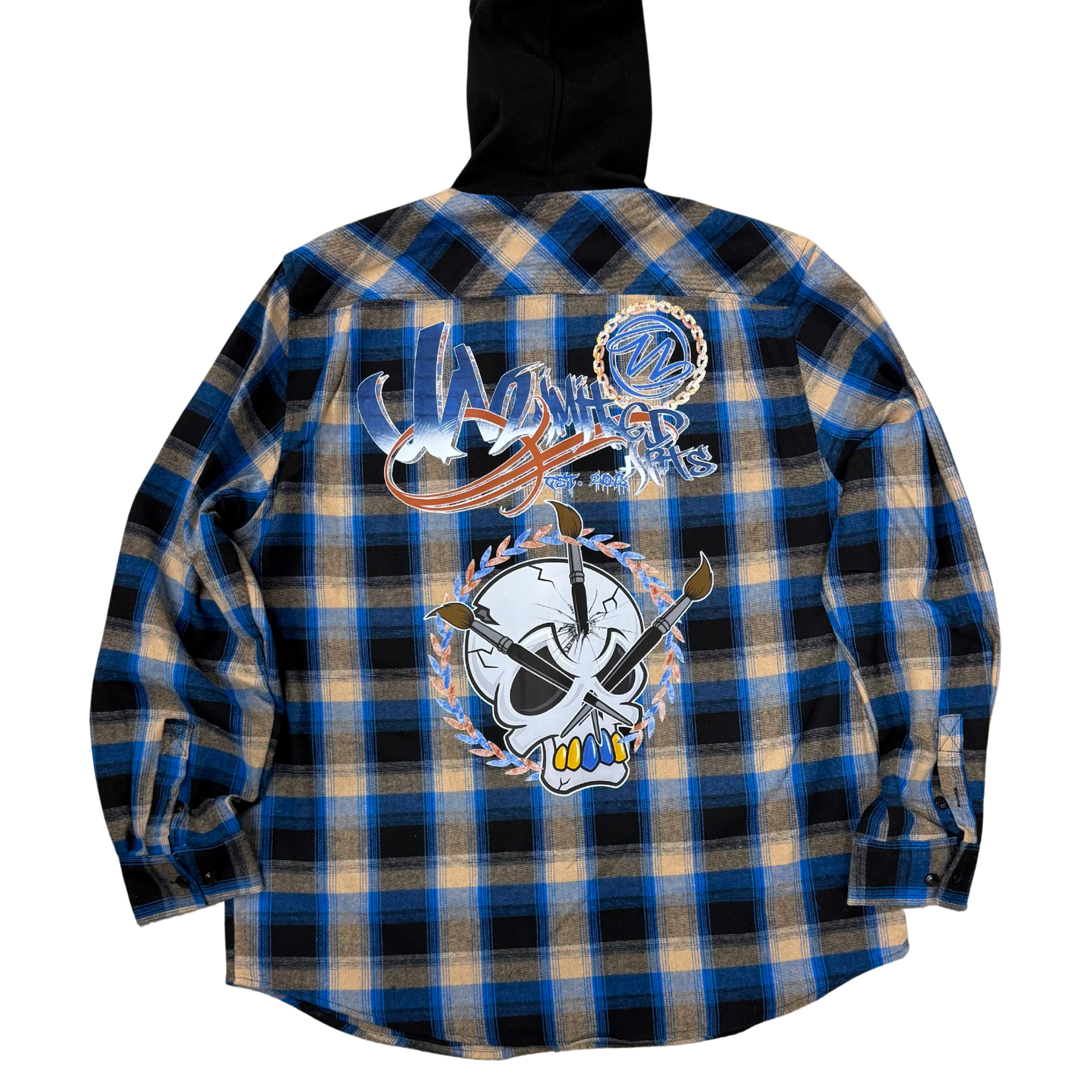 Equipped with a functional hood and rugged button-up design, it’s made for movement, layers, and wherever your next mission takes you. Whether you're painting walls or chasing your next idea, this flannel’s got your back in warmth and raw style.