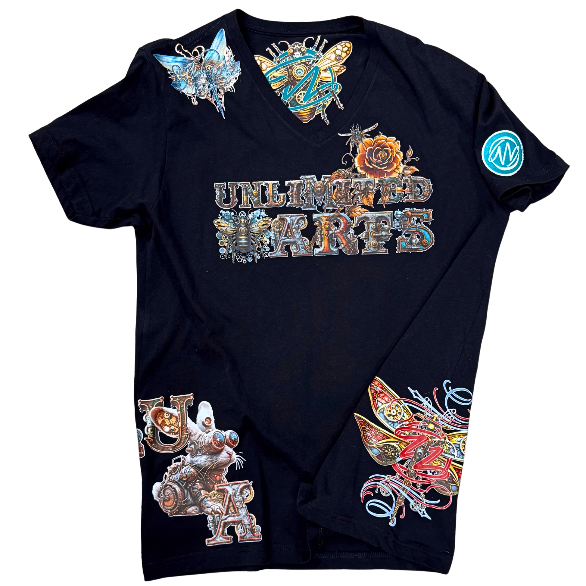 Turn heads and break molds with the BeArt Steampunk Bunny T-Shirt — where edgy design meets creative rebellion. This tee features a fully decked-out steampunk bunny on the back, dripping with gears, grit, and attitude. On the front, Unlimited Arts is reimagined in bold steampunk style, giving you a fusion of fashion and art that refuses to stay quiet.