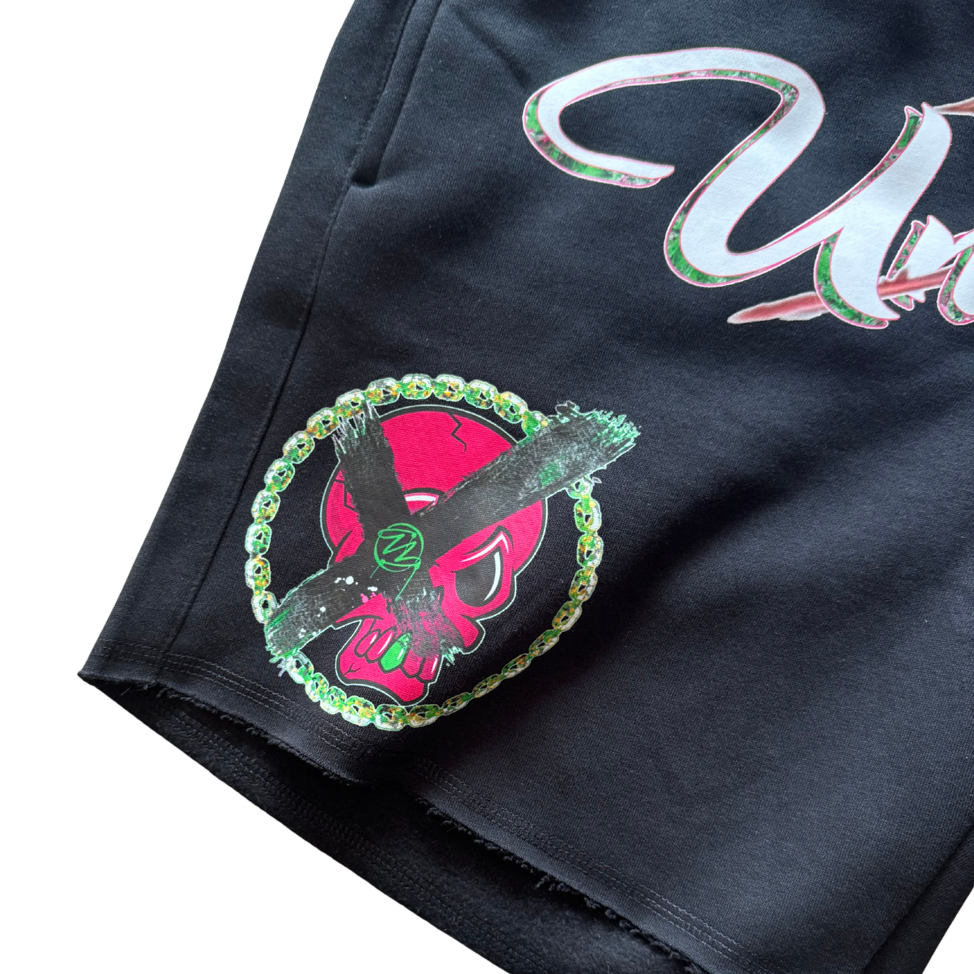 Proper and pretty in the front and party in the back! The Bonez 'N Blossoms Collection includes these sweat shorts! Add one of our matching tops and show off your threads!