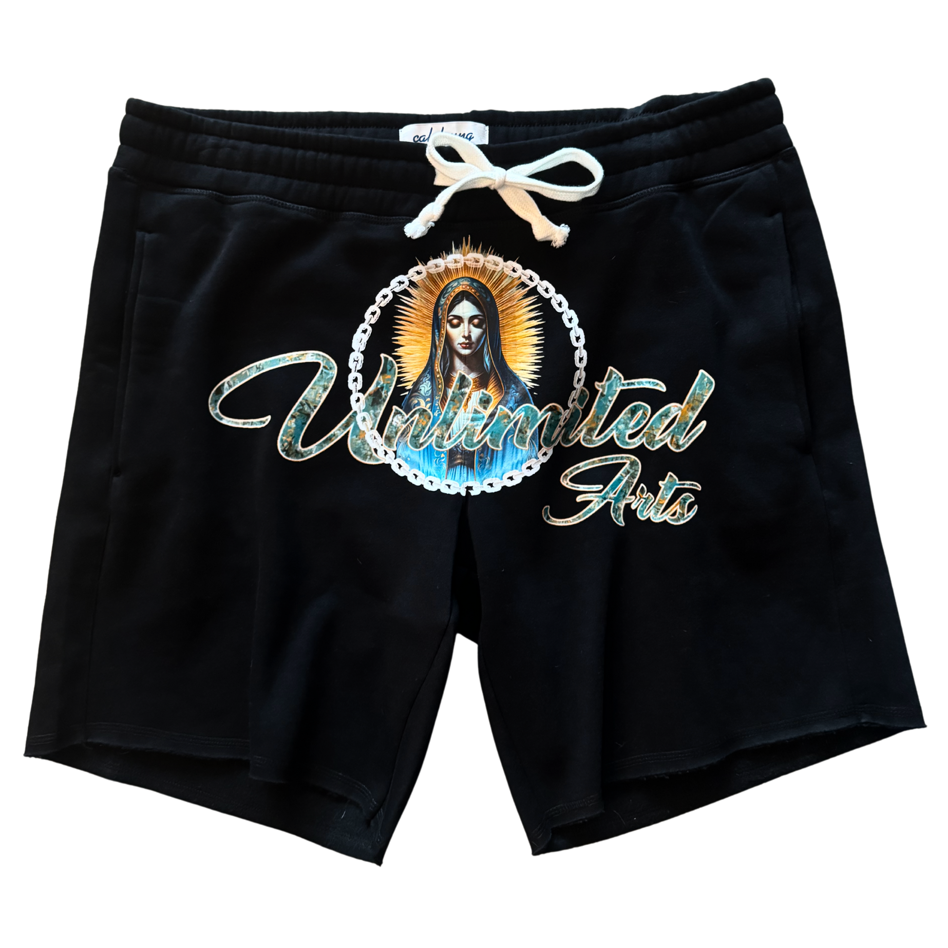Get ready to show off those tattooed legs with your Santa Maria Shorts! This drawstring shorts also have zipped pockets, so you don't need to worry about losing your shit! The shorts have the gorgeous Virgin Mary design on the front with the classic signature on the back, along with the Santa Maria rose.