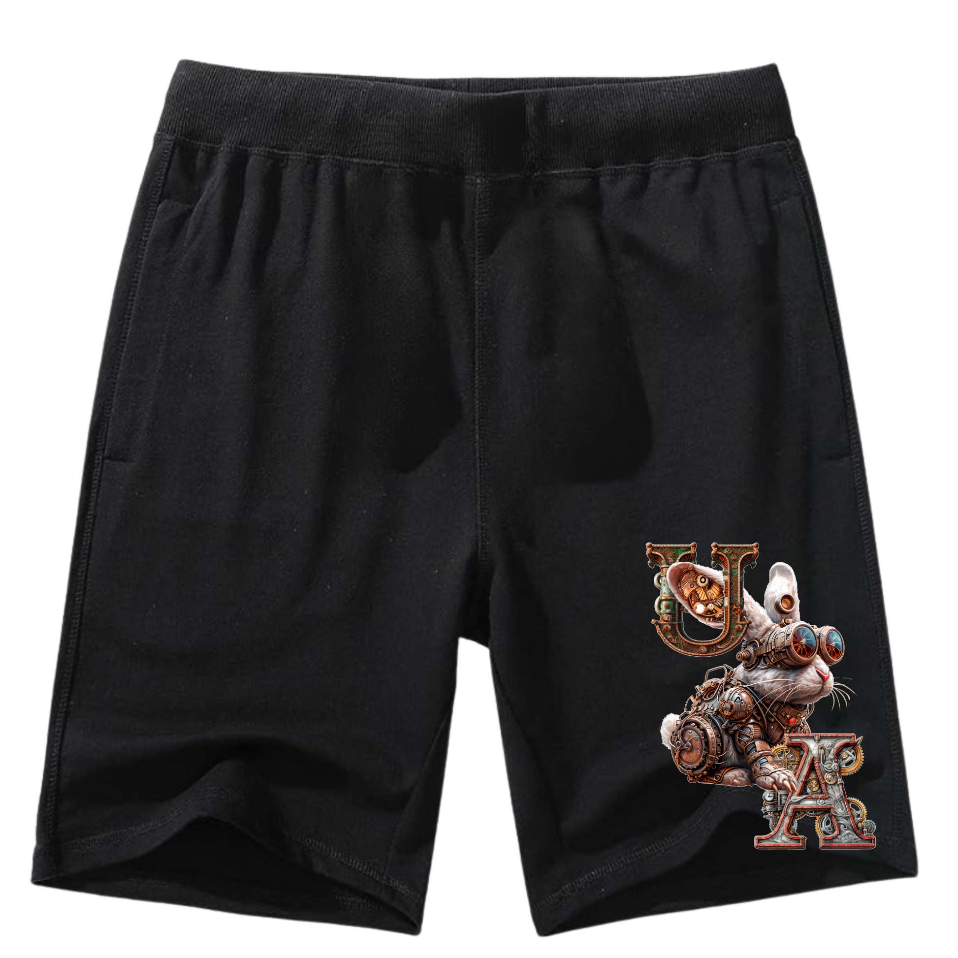 Break the rules in comfort you can move in. The Steam Punk Shorts complete the set — raw, blacked-out, and stitched with rebellion. The front rocks our twisted “BeArt” steam punk bunny logo. UA crest on the leg. And that back hit? The bunny’s back with the UA mark, daring anyone to step wrong.