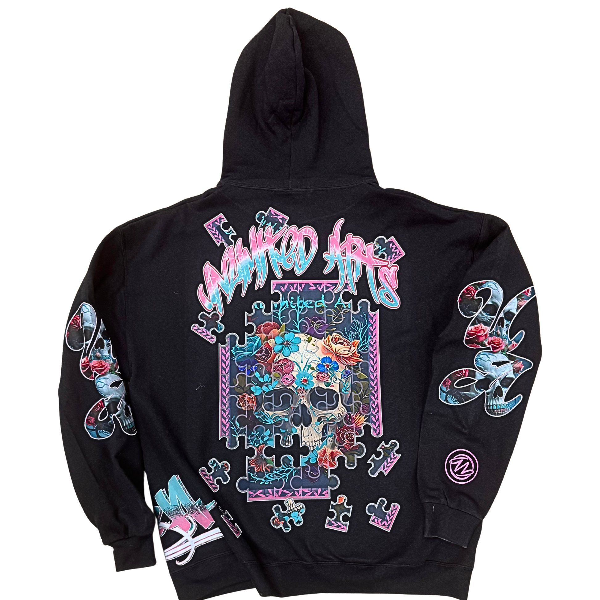Dive deep into style with one of our classic tattoo-inspired designs — the Underwater Pink Skull Hoodie from Unlimited Arts. This high-quality pullover features a hand-scripted Unlimited Arts logo across the chest and a bold, puzzle-like pink skull design on the back that hits like a full-back tattoo.