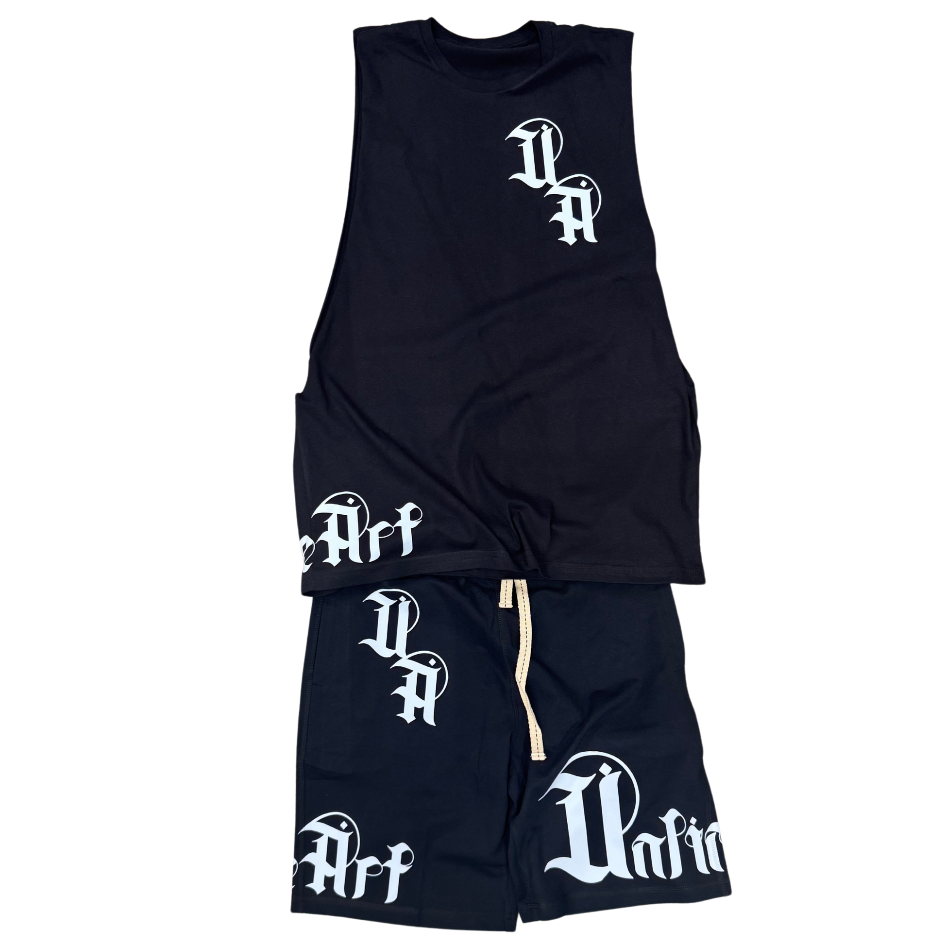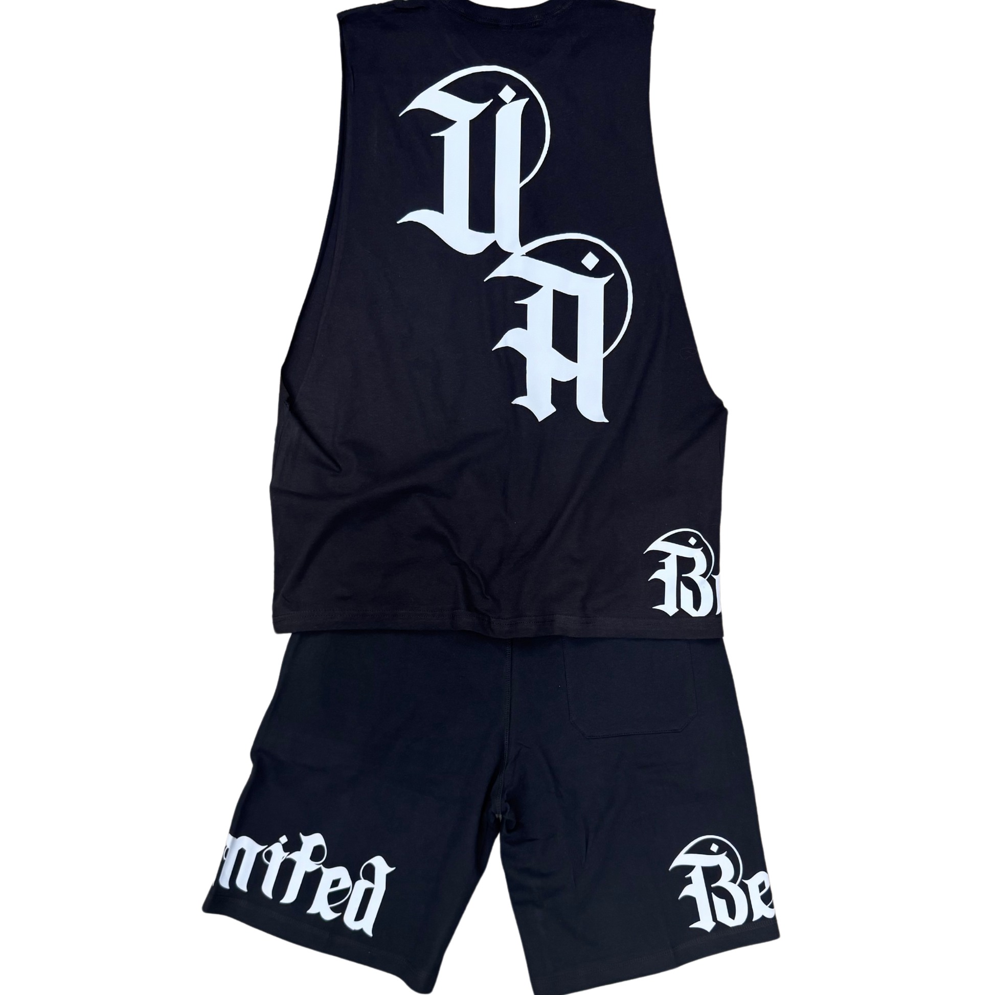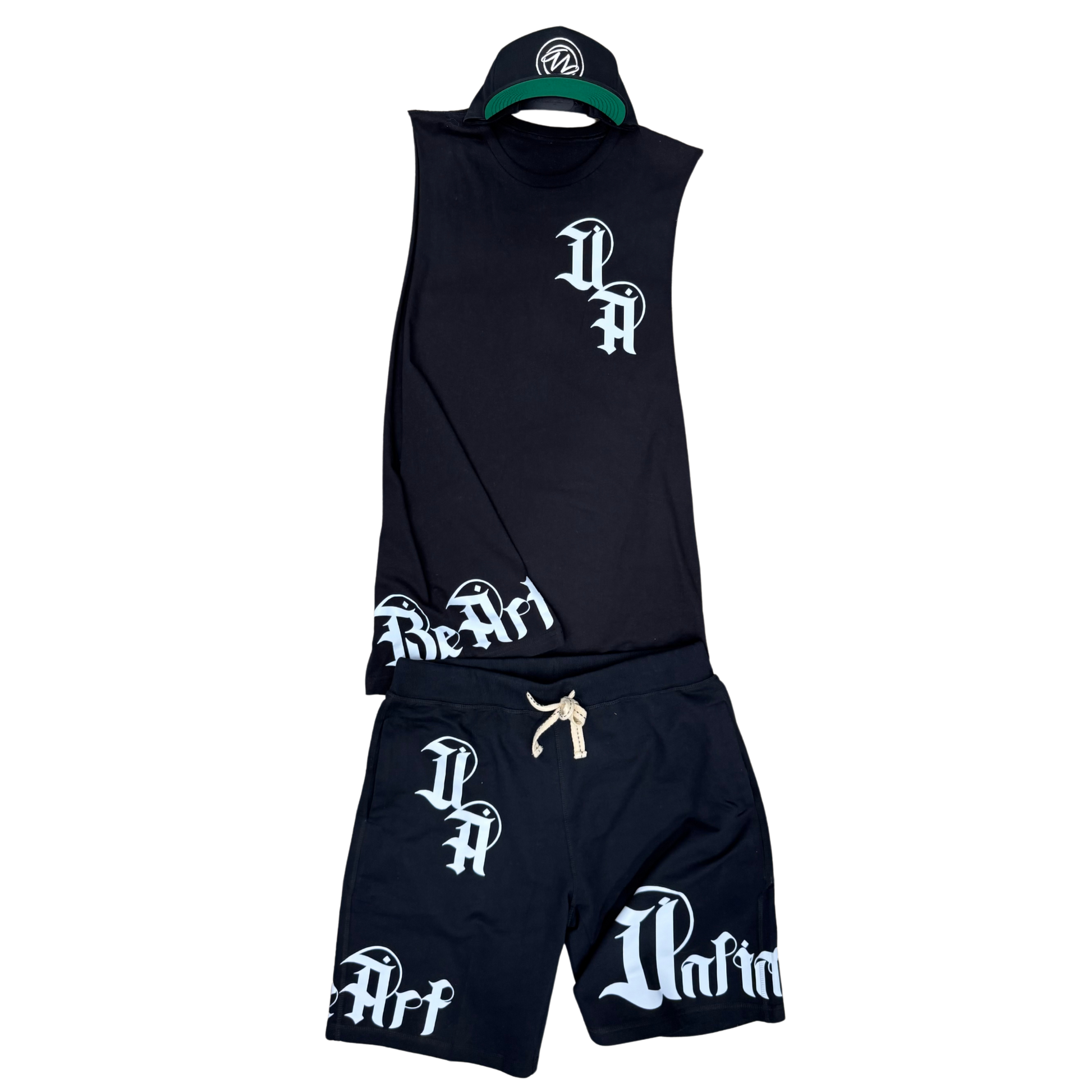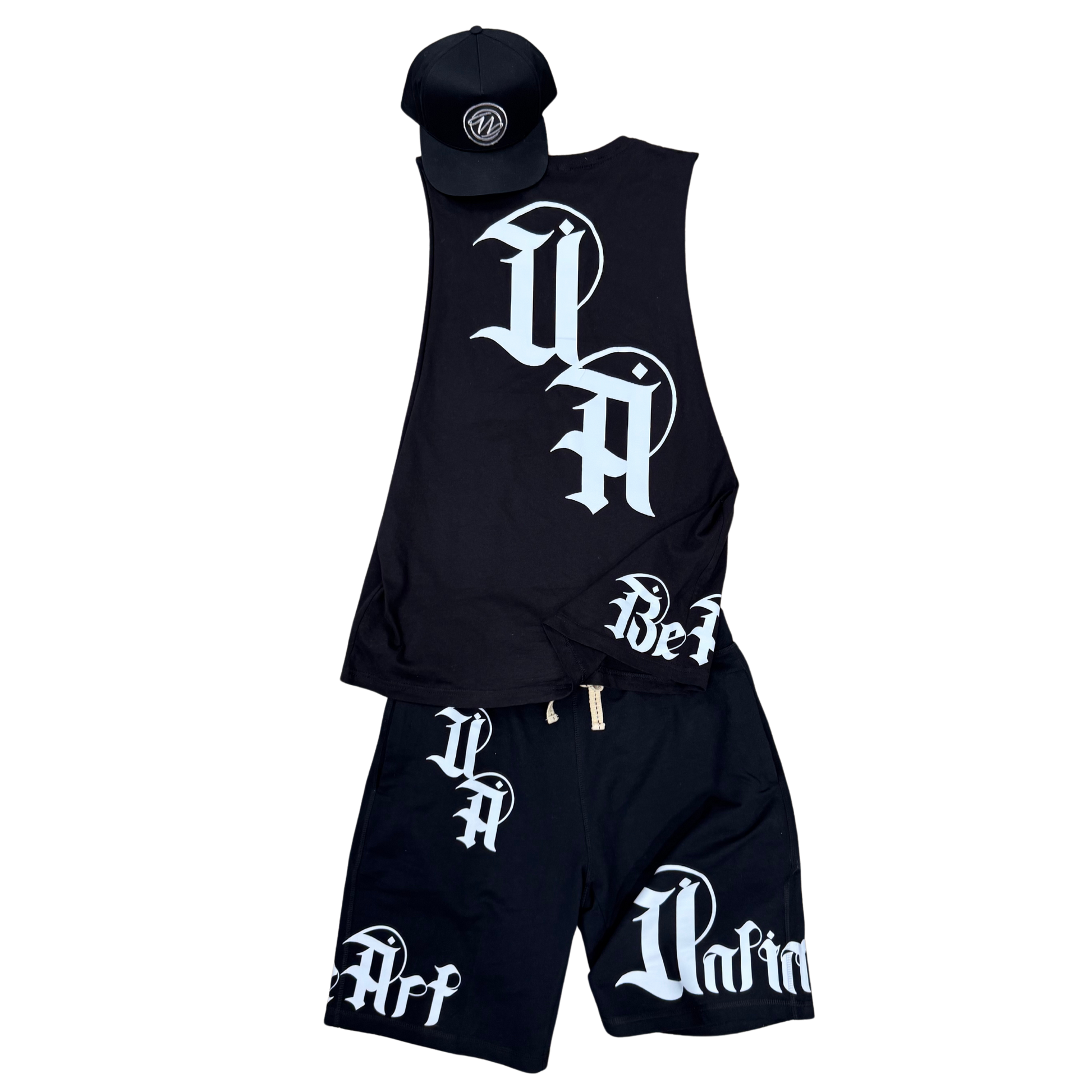 Black and white never beg for attention — they own it. This sleeveless tee, shorts, and hat combo hits with stripped-down style and raw edge. Grab each piece solo or throw the whole damn set on and roll deep.