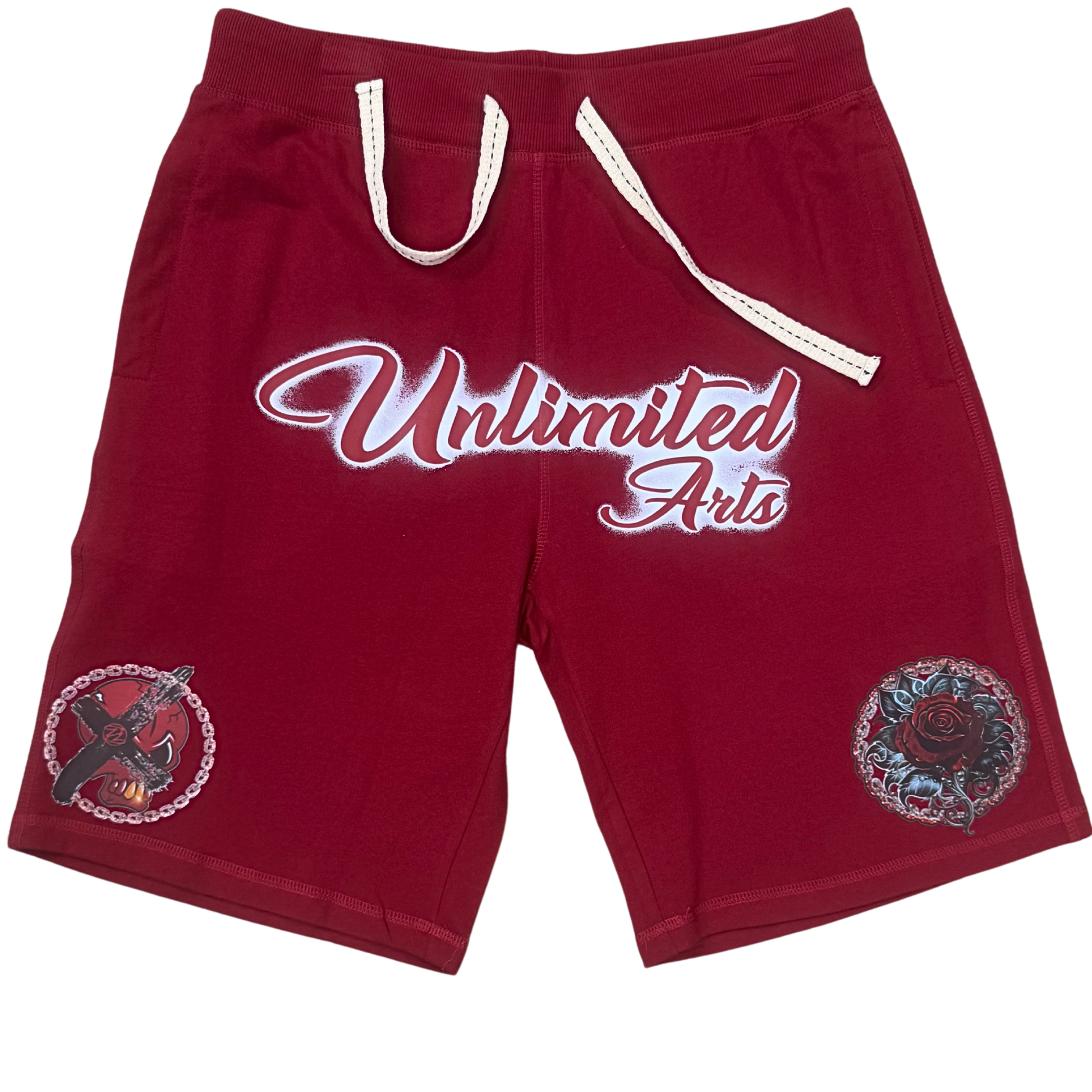 Unlimited Arts Cuts like a Thorn Burgundy Sweat Shorts